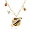 14K Yellow Gold Montana Agate/Fire Citrine/Diamond Saturn Neckpiece