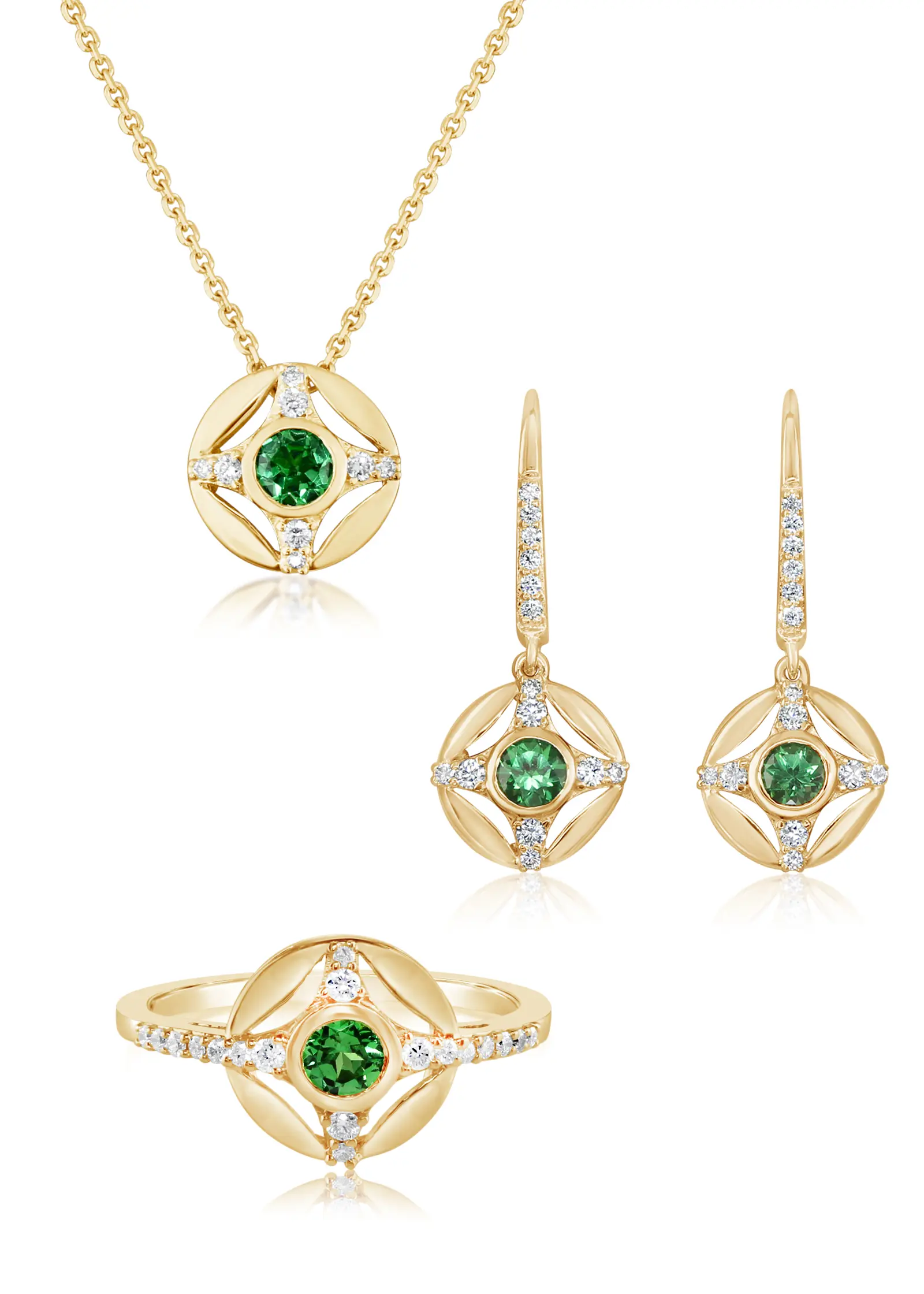 14K Yellow Gold Ring with a 0.30 ct Tsavorite accented with Diamonds (Style RCC272V22C)
